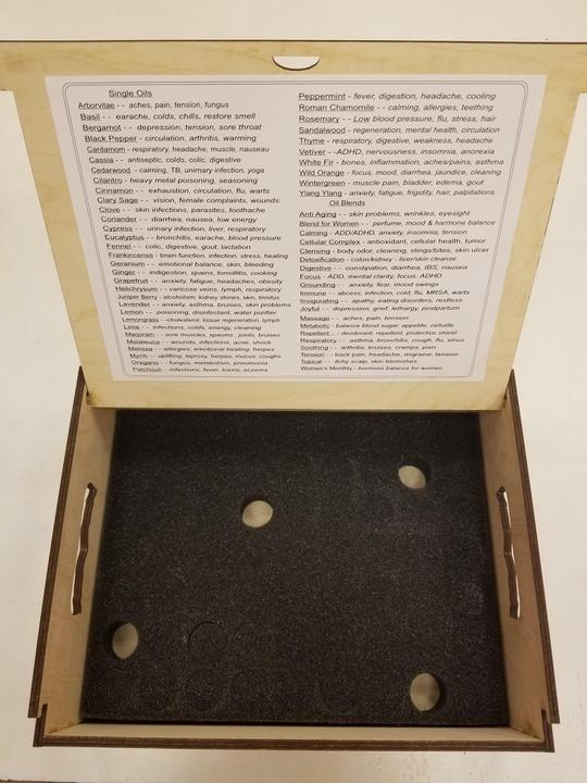 Wood box 63 bottle 5, 10, 15 ml, Handmade in Utah with precut foam insert will hold 63 bottles.