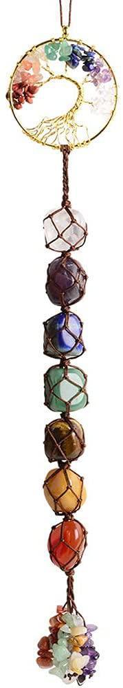 7 Chakras Healing Crystals]: Clear Crystal Quartz, Amethyst, Lapis Lazuli, Green aventurine, Tiger eye, Yellow Jasper, Red Jasper. Tree of Life Size: 1.77 inches,Tumbled stones size: 0.7-0.98 inches, Chipped stones size: 5-8mm. Total Length: 11-11.5 inches