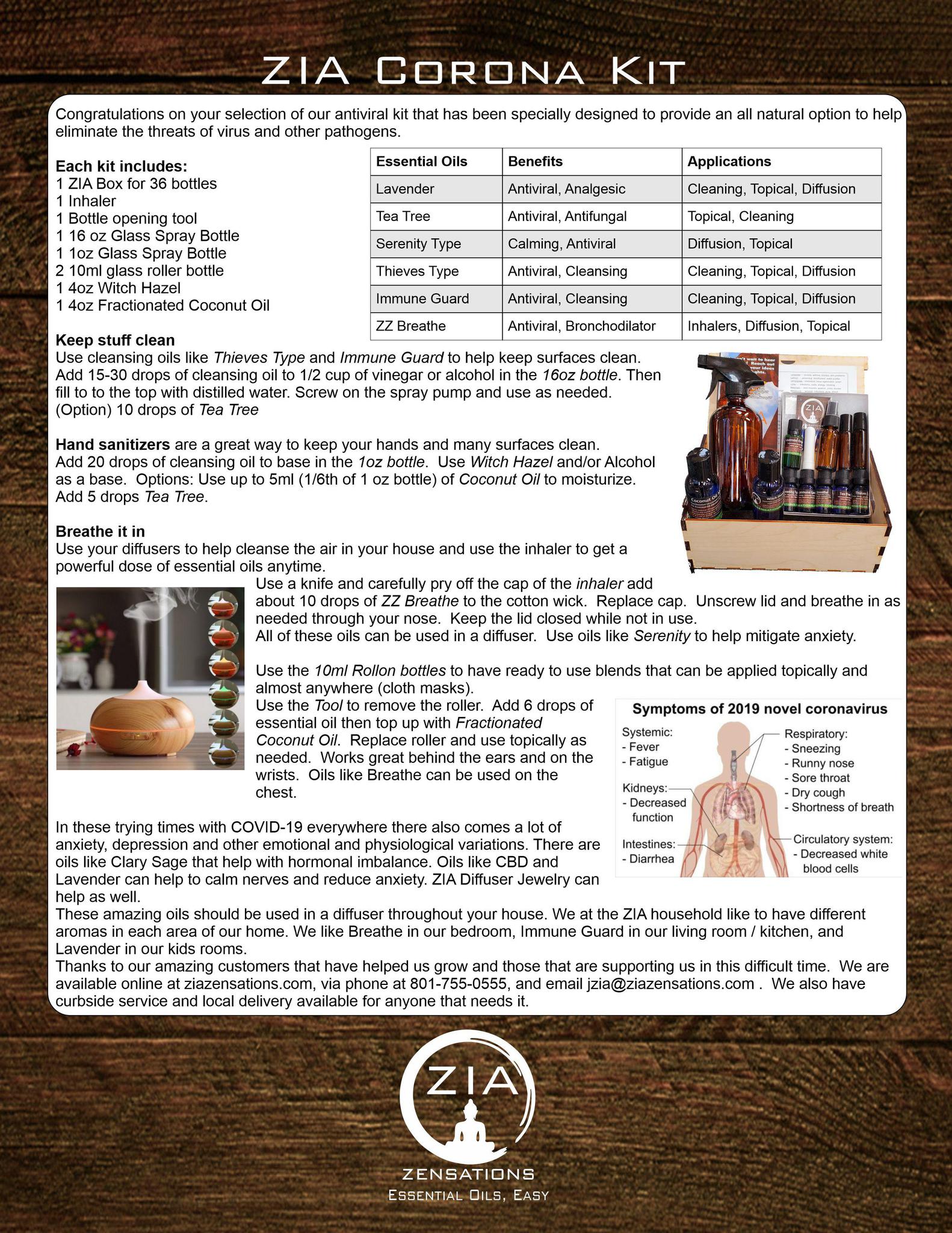 This ZENsational kit comes complete with our favorite antiviral essential oils along with all of the necesary components to easily make your own blends. Whether you want to learn a little more about leveraging the power of ZIA essential oils or just want to share it with a special someone as a thoughtful gift, this is a ZENsational kit at an awesome price!
